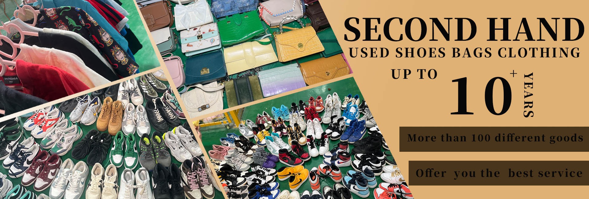 Guangzhou Brand BagTrade Co., Ltd is a professional exporter of premium second-hand shoes.clothes, and bags from China. Why Choose Us: 1. Extensive Export Experience-Over 20 years of successful export operations, servinccustomers worldwide. 2. Strong Team - 35 well-trained employees ensuring efficient sorting, packaging, and shipment3. Large Warehouse Capacity- 5,000 square meters of storage, supporting stable and fastsupply. 4. Diverse Sourcing Channels - A wide range of products to meet different customer needs andmarkets. 5. Strict Quality Control - Each item is carefully inspected to guarantee high standards of quality6. Global Reach - Long-term export to multiple countries, trusted by clients around the world.With solid experience, professional service, and reliable product quality, we are your trusted partner for Second Hand Business.
